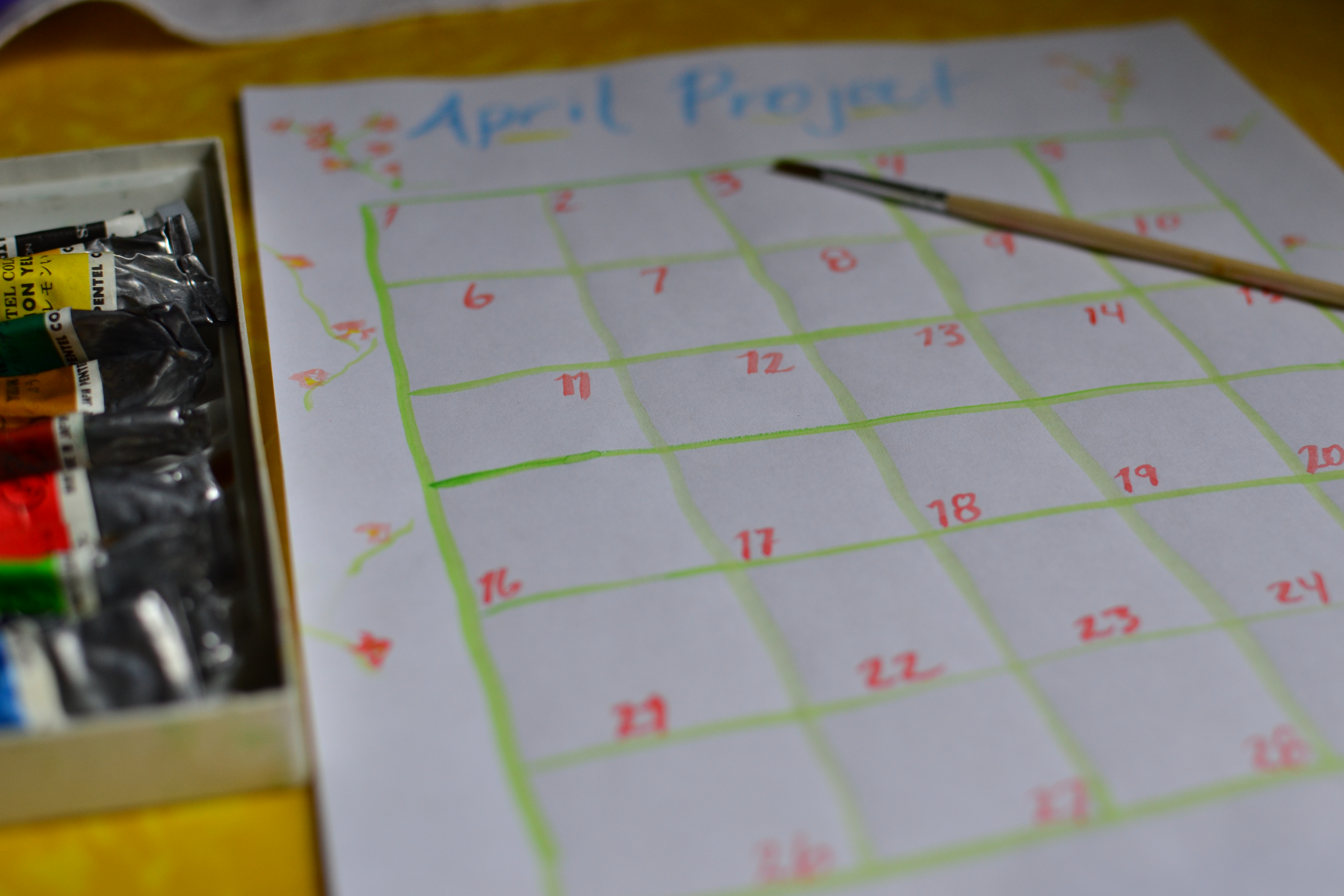 For my April project I’ve decided to photograph the tree outside of living room window everyday. I’ve always wanted to do a project like this and since it’s spring the timing is perfect. I made a little watercolor calendar to keep my on track and help me remember. At the end of the month I’m hoping to do something really fun with the pictures. We’ll see but I’ll keep it a secret for now just in case.